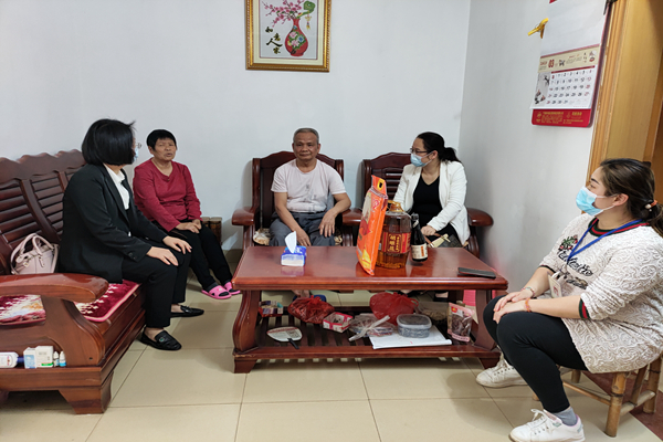 梧州分公司黨員干部與社區(qū)工作人員一道入戶慰問失獨(dú)家庭、病殘老人、困難群眾,并送上油米等慰問品。