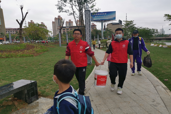 南寧營業(yè)部廣大青年職工聯(lián)合當(dāng)?shù)亍皣鴮W(xué)贏天下”志愿者到康和城肯德基廣場、繡球廣場江濱路沿線社區(qū)街道進(jìn)行大掃除。